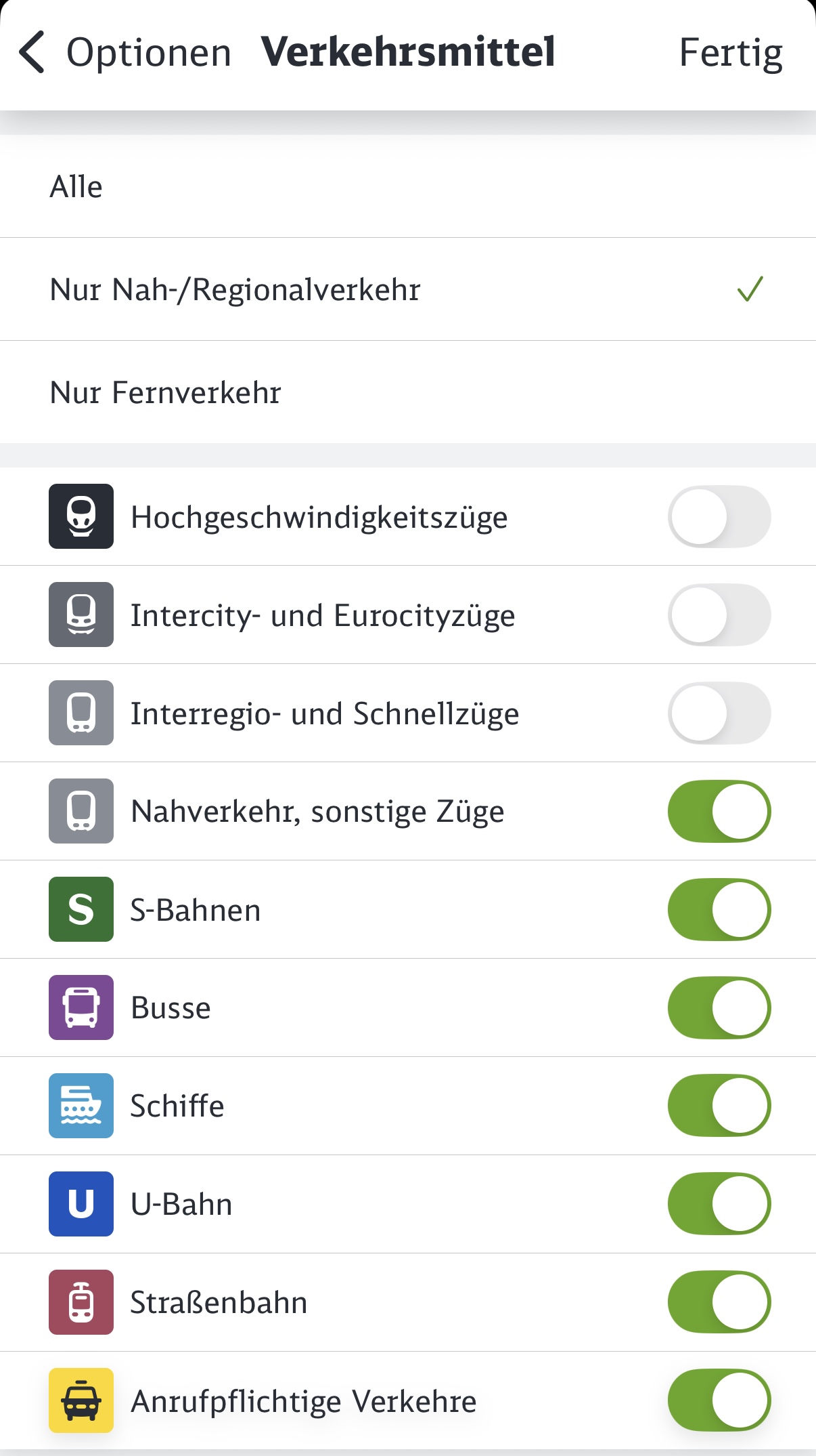 Bij opties kun je kiezen met welke soorten treinen, en andere ov-middelen je wilt reizen. Als je, bijvoorbeeld, een Deutschlandticket hebt, dan kun je zeer makkelijk kiezen voor alleen regionaal vervoer.